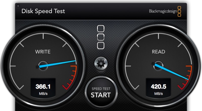 Bei uns im Büro haben wir gerade ein Testmodell der Freecom mSSD mit 256 GB Speicherplatz im Einsatz. Beim Gehäuse war ich zunächst überrascht, dass es tatsächlich aus Aluminium gefertigt wurde, da es sich eigentlich gar nicht so anfühlt. Das liegt aber wohl daran, dass ein sehr dünnes Material verwendet wurde. Sehr überzeugend ist die Geschwindigkeit: Sowohl im Lesen als auch Schreiben wurden im Blackmagic Disk Speed Test weit über 300 MB/s erzielt.
