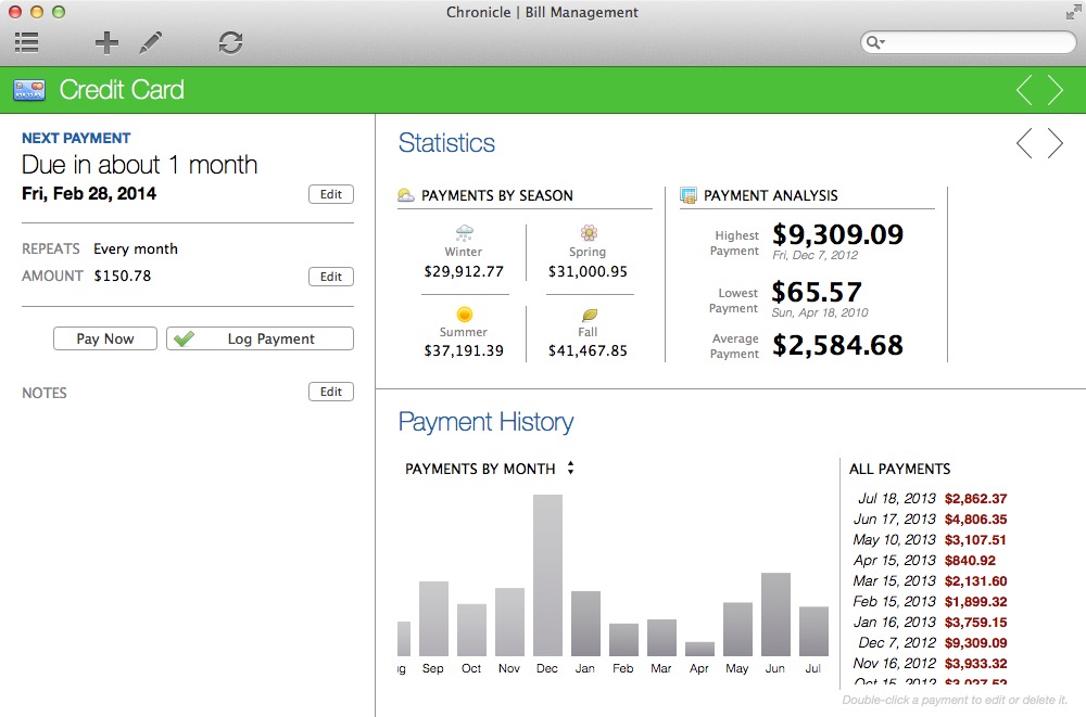 Chronicle: Chronicle ist ein seit 2012 verfügbares Programm zur Verwaltung von Rechnungen. Natürlich bietet die Mac-App auch Auswertungen und Diagramme, zudem steht eine iOS-App für iPhone und iPad bereit, die per iCloud-Abgleich alle Daten mobil bereitstellt. Weiterhin mit an Bord sind eine Erinnerungsfunktion, ein Kalender sowie ein interner Browser. Hierzulande hat das Programm noch nicht allzu viele Freunde gefunden, in den USA wird diese aber mit guten viereinhalb Sternen bewertet. Wenn ihr mit der englischen Sprache kein Problem habt, könnt ihr hier zugreifen. (Mac Store-Link, 14,99 → 1,99 Euro)