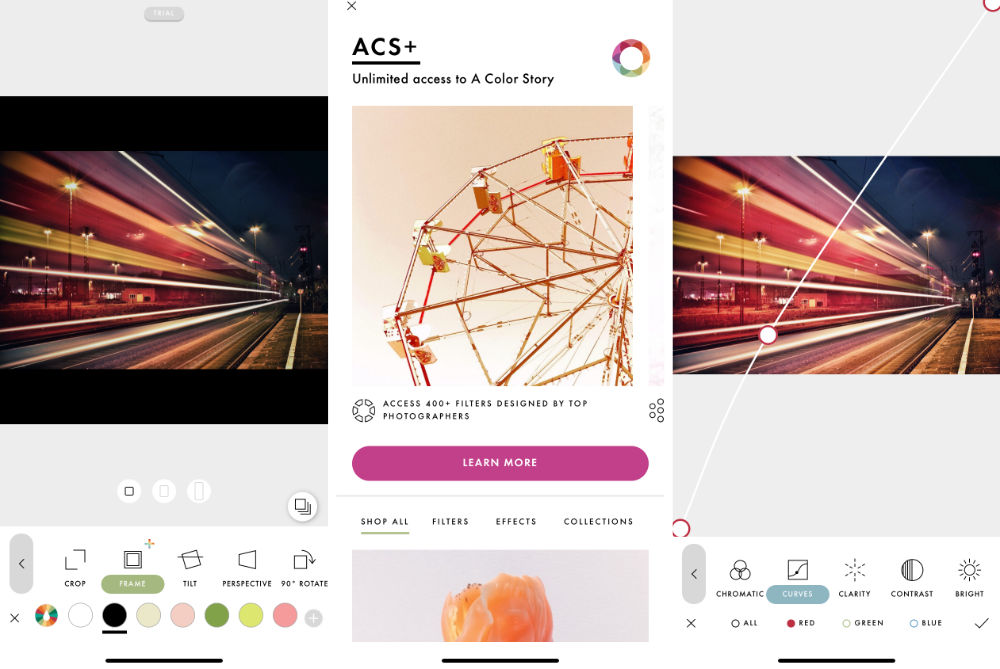 „A Color Story konzentriert sich auf frische Fotos und Videos, trendige Bearbeitungsstile und knallende Farben“, heißt es von den Machern im App Store. So gibt es in der App über 400 Filter, die von „Top-Fotografen und Influencern“ designt worden sind, über 120 bewegliche Effekte, mehr als 20 Werkzeuge, darunter selektives Bearbeiten, Kurven und mehr, personalisierte Filter und Presets, eine Stapelverarbeitung und auch die Möglichkeit, Videos bearbeiten zu können.