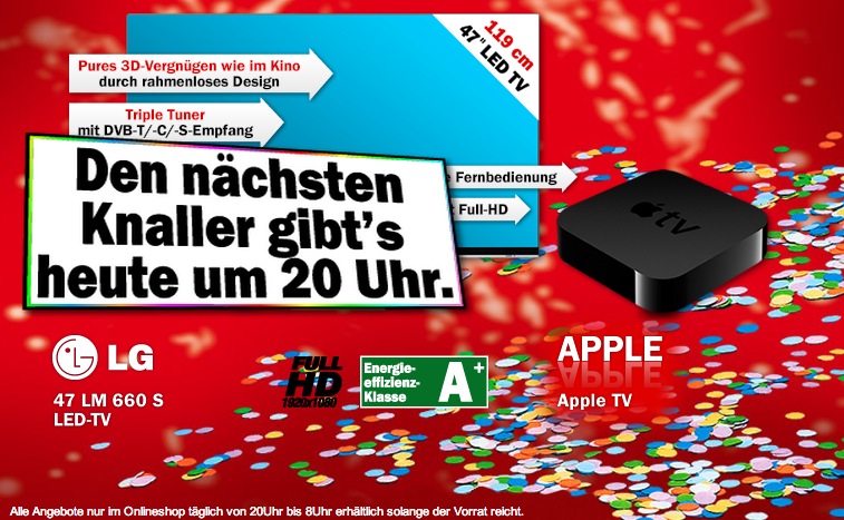 In letzter Zeit lohnt es sich wirklich, auch nach Feierabend bei Media Markt & Co vorbeizuschauen. Heute gibt es den Apple TV im Angebot.