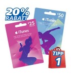 Von Montag bis Samstag gibt es deutschlandweit 20 Prozent Rabatt auf die iTunes-Karten im Wert von 25 und 50 Euro. An der Kasse macht das dann Preise von 20 oder 40 Euro. Mehr als 20 Prozent hat es in den vergangenen Monaten leider nicht gegeben.