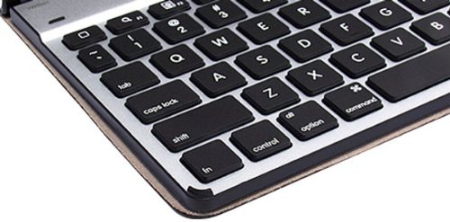 An der Verarbeitung ist nichts auszusetzen, das Design erinnert an das Smart Case von Apple. Natürlich muss zuerst eine Verbindung zwischen Tastatur und dem iPad hergestellt werden, dazu koppelt man die Geräte einfach via Bluetooth. Auf der Tastatur kann man angenehm tippen, auch wenn herkömmliche Tastaturen noch etwas größere Tasten zu bieten haben. Insgesamt funktioniert das Schreiben aber wirklich gut, zusätzlich stehen noch Funktionstasten zur Verfügung, mit denen man zum Beispiel den Home-Button bedienen oder die Suche aufrufen kann. Außerdem gibt es Tasten zum Kopieren, Einfügen und Ausschneiden, des Weiteren kann man die Musik-App steuern oder das iPad in den Ruhezustand schicken.