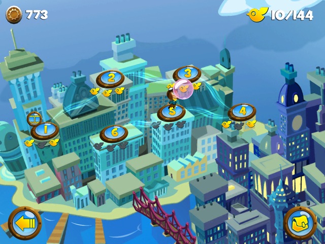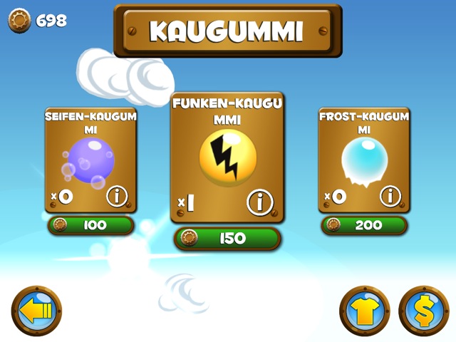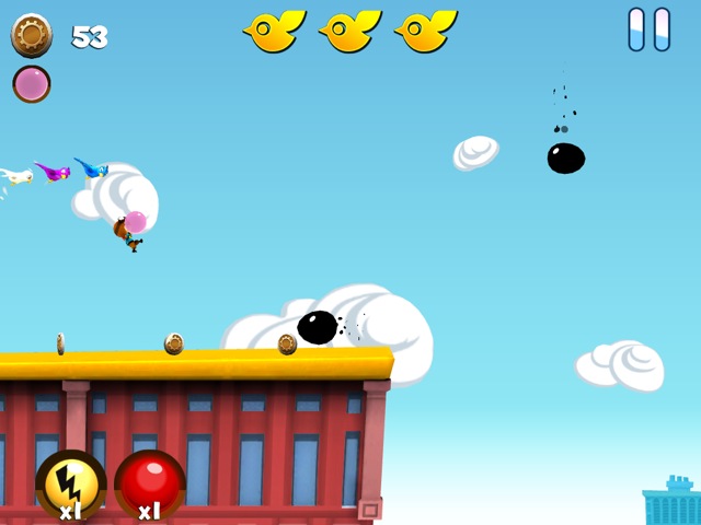 Kommen wir nun aber zum Spiel selbst. Der kleine Junge läuft automatisch durch die toll gestalteten Welten und kann per Fingertipp auf das Display springen. Wenn man den Finger danach wieder auf das Display hält, kann man sein Kaugummi aufblasen und für kurze Zeit durch die Luft fliegen. Dabei sollte man natürlich aufpassen, die Blase nicht zum Platzen zu bringen.