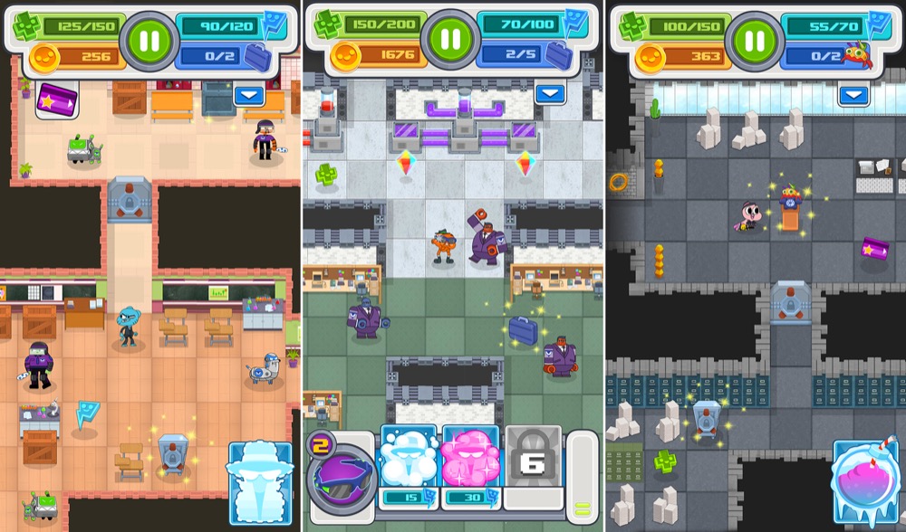 Um weitere Welten freizuschalten, gilt es möglichst viele Münzen zu sammeln, mit denen aber auch die Fertigkeiten der insgesamt vier verfügbaren Spione verbessert werden können. Mit speziellen Zaubern und Extras könnt ihr zum Beispiel Gegner einfacher besiegen oder kurzzeitig unsichtbar werden, um die Missionsziele schneller zu erreichen. Doch aufgepasst: Ist die eigene Energie erschöpft, verliert ihr nicht nur Münzen, sondern müsst auch die Mission erneut in Angriff nehmen.