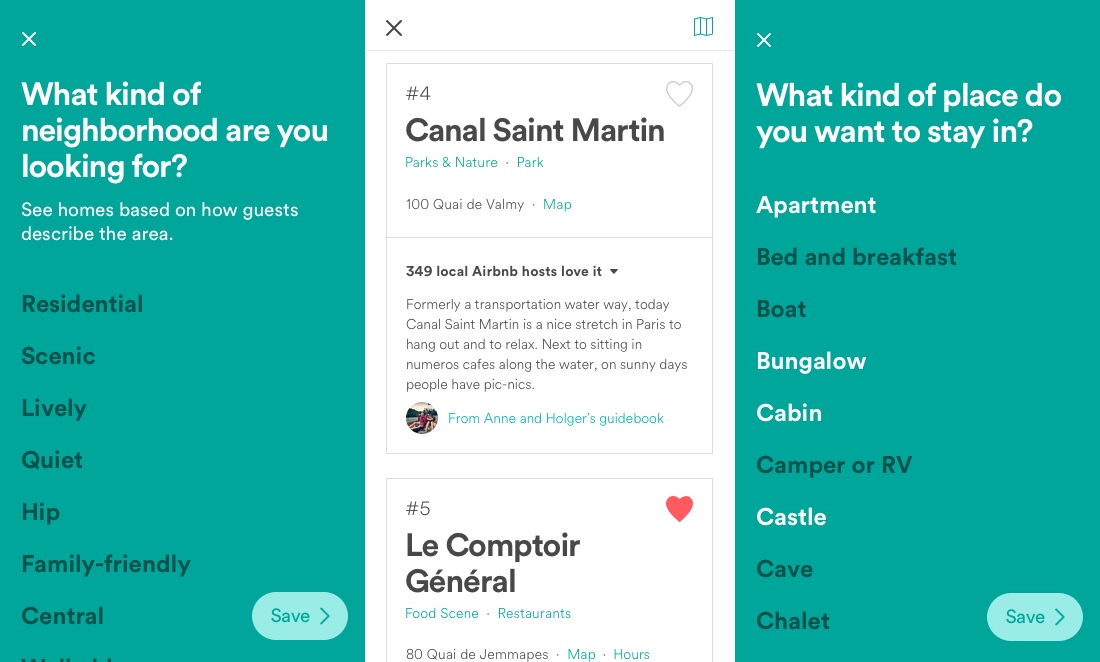 In der neuen Airbnb-App wird man daher zunächst zum Traum-Urlaub befragt und bekommt danach, basierend auf den ausgewählten Vorlieben, passende Gastgeber, Unterkünfte und Stadtviertel präsentiert. Leider habe ich diese Abfrage der persönlichen Vorlieben bisher noch nicht entdecken können, möglicherweise habe ich sie aber auch einfach nur übersehen. Airbnb teilt zu diesem Thema mit: „Die App lernt kontinuierlich dazu, für welche Art von Unterkunft sich der Reisende interessiert und nach welchen konkreten Reiseerlebnissen er sucht.“ Wie genau die neuen Bereiche der App aussehen, zeigen euch die (leider nur englischsprachigen) Screenshots:
