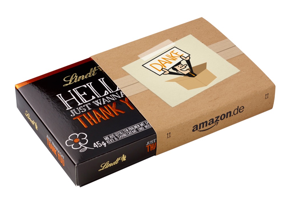 Ab dem 12. Dezember um 10 Uhr haben Amazon.de Kunden unter www.amazon.de/dankeliebernachbar die Möglichkeit, ihrer Bestellung eine der kostenlosen Pralinen-Editionen von Lindt hinzufügen. Jede Box enthält 45 g feinste Schokoladen-Pralinés und ist als kleines Amazon Paket im „Danke“-Design gestaltet. Prime-Mitglieder können die süße Aufmerksamkeit auch Bestellungen bei Amazon Pantry und Prime Now (verfügbar in Berlin und München) gratis hinzufügen. Insgesamt sind 13.300 Stück verfügbar.