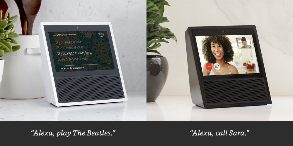 „Alleine im letzten Jahr hat Alexa in Deutschland tausende neue Skills gelernt, und sie wird jeden Tag smarter. Mit Echo Show kann sie jetzt auch Dinge zeigen. Echo Show bietet Video Flash Briefings, Telefonate und Messaging, Musiktexte, Bildübertragungen von Smart Home-Kameras, Fotos, Wetterdaten und vieles mehr – man muss nur fragen.“