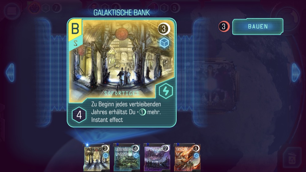 Doch damit nicht genug: Mit reiner Diplomatie und Nächstenliebe kommt man in Among the Stars nicht weit. Denn die wichtigste Aufgabe in diesem taktischen Kartenspiel lautet, die eigene Raumstation zur besten im ganzen Weltall auszubauen. Dies geschieht vornehmlich durch das Aufbauen und Erweitern der eigenen Station mittels Modul-Karten, die vom Spieler strategisch günstig platziert werden müssen, um Siegespunkte zu erhalten. „Die Bauzeit beträgt vier Jahre, und am Ende gewinnt die Alienrasse mit den meisten Punkten“, erklären die Entwickler.