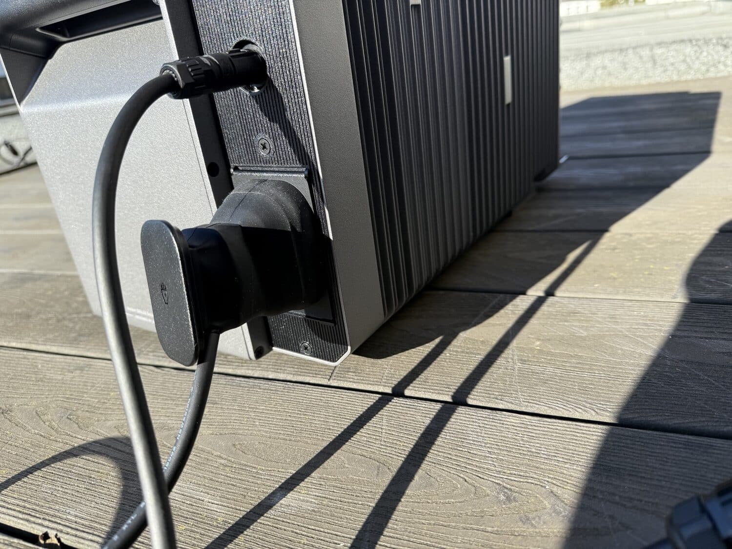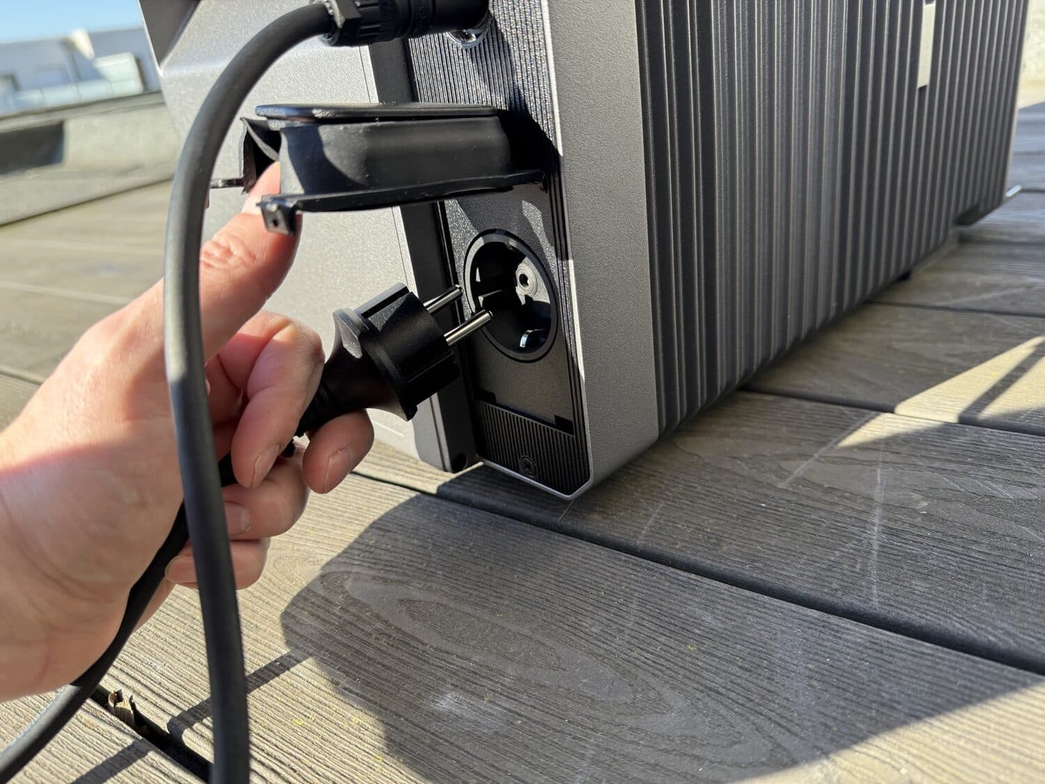 Zusätzlich verfügt die Solix Solarbank 2 AC aber über eine AC-Steckdose, die auch in Verbindung mit bestehenden Mikro-Wechselrichtern genutzt werden kann. Wenn ihr also schon ein Balkonkraftwerk ohne Speicher im Einsatz habt, könnt ihr einfach das bestehende Kabel aus der Steckdose ziehen und in die Solix Solarbank 2 AC stecken. So kann der bestehende Wechselrichter 800 Watt in die Solarbank einspeisen, mit den beiden zusätzlichen PV-Eingängen könnt ihr den Solarertrag erhöhen.