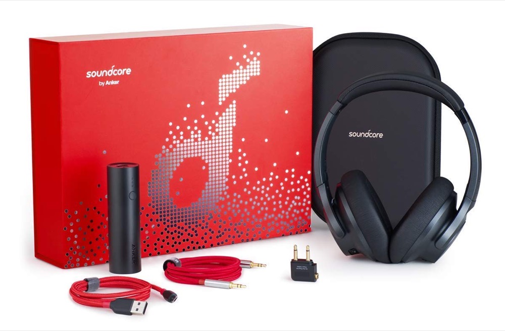 Besonders spannend finden wir das Soundcore Life 2 Geschenkset, eine limitiert Edition mit den Over-Ear-Kopfhörern und passendem Zubehör. Statt 99,99 Euro zahlt ihr heute nur 74,99 Euro und bekommt obendrauf noch eine Powerbank mit 5.000 mAh, ein rotes Micro-USB-Kabel, ein rotes AUX-Kabel, einen Flugzeugadapter und ein Reiseetui oben drauf.