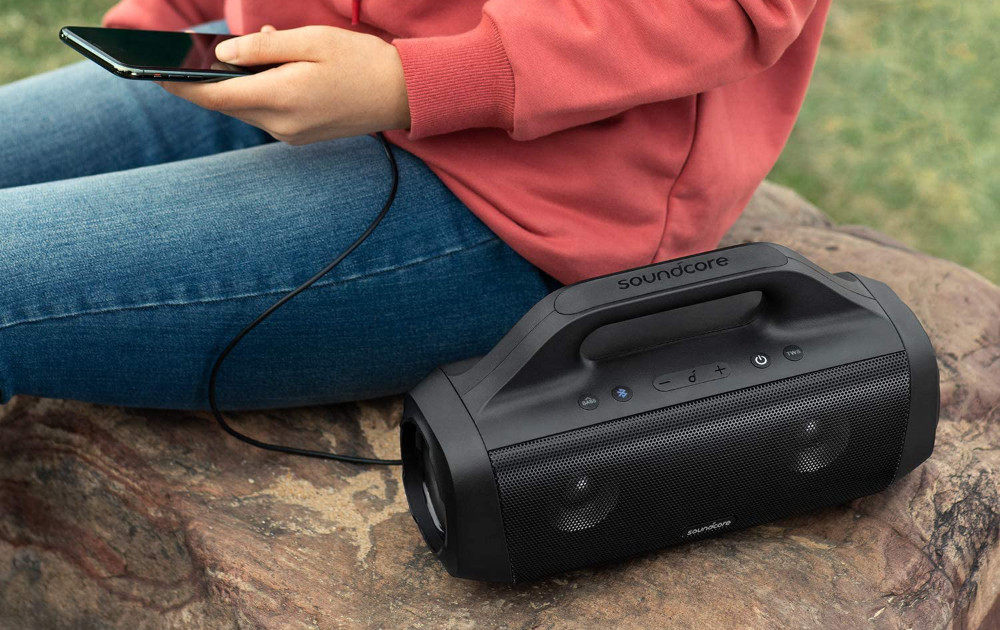 Wer noch mehr Power benötigt, kann zudem ab sofort auf den Anker Soundcore Motion Boom zurückgreifen. Auch dieser verfügt über nahezu alle obigen Charakteristiken des Soundcore 3, inklusive 24-stündiger Akkulaufzeit, IPX7-Wasserschutz, Bluetooth 5.0, Audiotreiber aus Titan und BassUp-Technologie. Mit einem Gewicht von 2 kg und Maßen von 34,6 x 14,8 x 20 cm ist dieser kleine Powerklotz jedoch deutlich größer und schwerer, und eignet sich aufgrund seines Tragegriffs und der Leistung von 30W vor allem für den Outdoor-Einsatz, beispielsweise im Park, auf Festivals oder auf Baustellen.