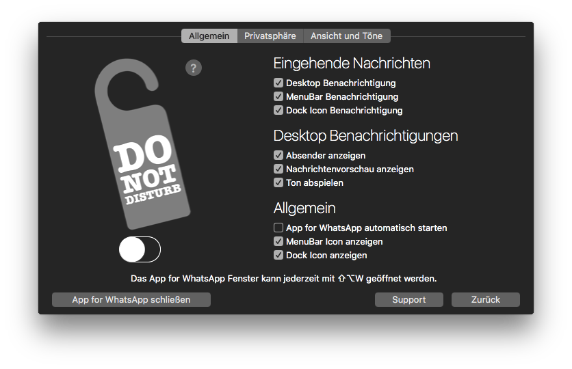 Die Privatsphäre unsere Nutzer ist für uns von oberster Priorität. Das ist der Grund wieso alle Kontakt und Chat Daten direkt zwischen App for WhatsApp auf deinem Mac und den WhatsApp Servern übertragen werden.