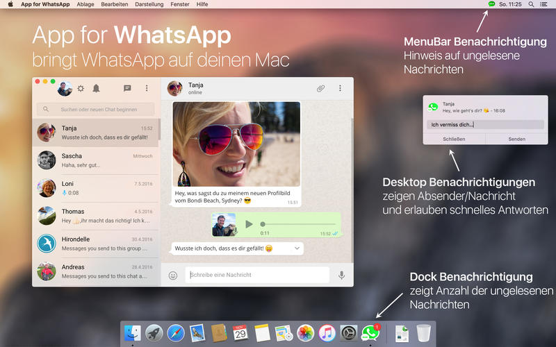 App for WhatsApp ist aus den Mac App Store-Charts nicht mehr wegzudenken. Jetzt hat der Entwickler weitere Funktionen nachgereicht.