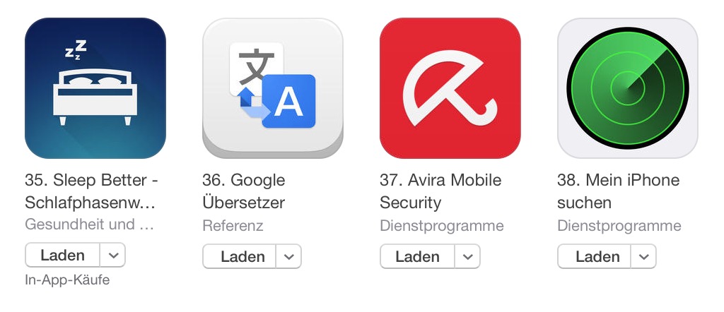 Was nun aber auf der Strecke bleibt: Kostenlose Apps ohne In-App-Käufe werden nun auch mit „LADEN“ und nicht „GRATIS“ gekennzeichnet.