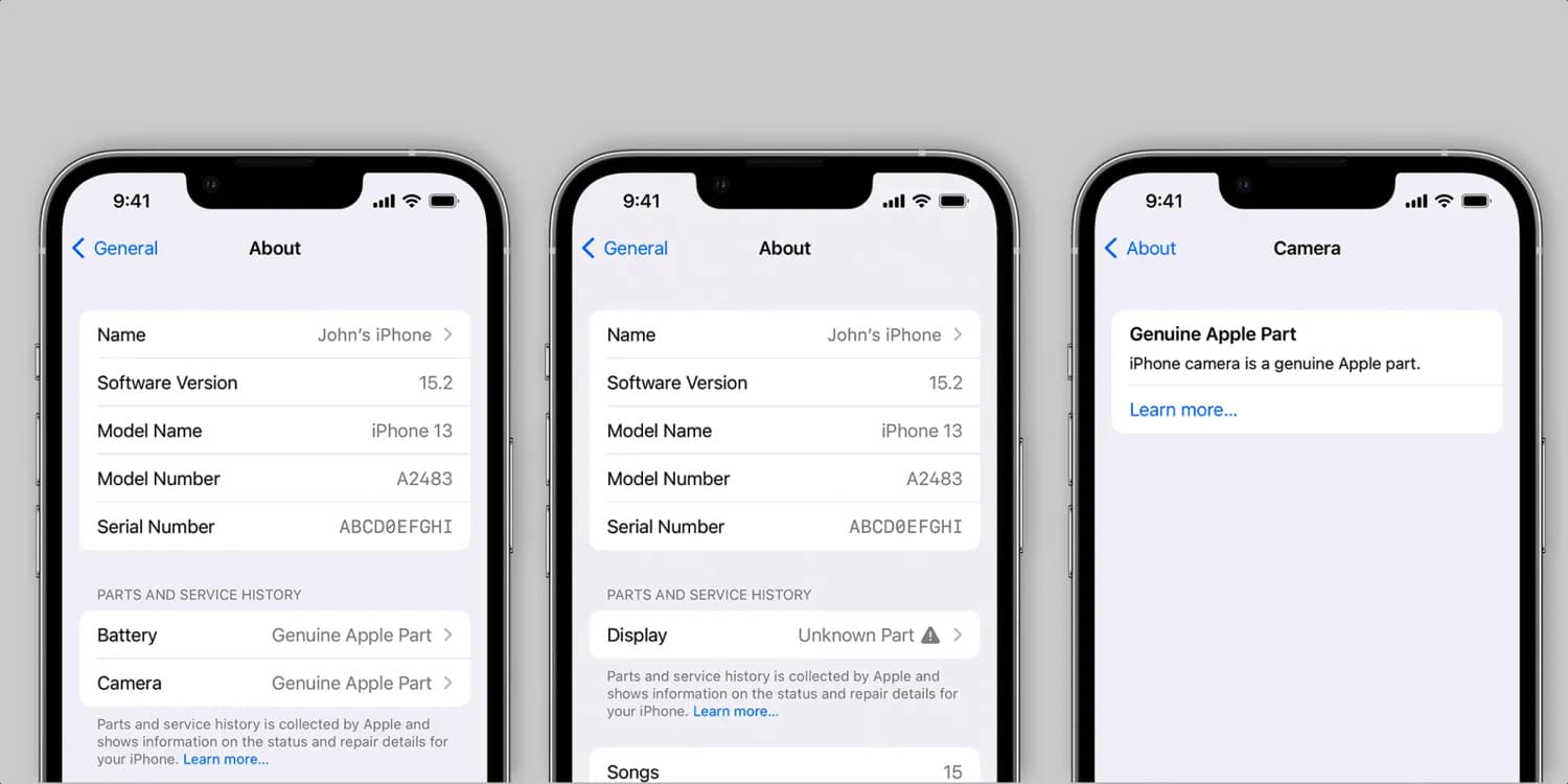 Mit dem anstehenden Release von iOS 15.2 wird Apple für noch etwas mehr Sicherheit und Komfort sorgen. In den iOS-Einstellungen wird man dann nämlich nicht nur sehen können, dass das iPhone bereits repariert und Teile ausgetauscht wurden, sondern auch eine Liste der getauschten Einzelteile sehen. Zudem zeigt Apple an, ob es sich um Originalteile handelt. Unbekannte Teile werden mit einem Warnhinweis markiert.