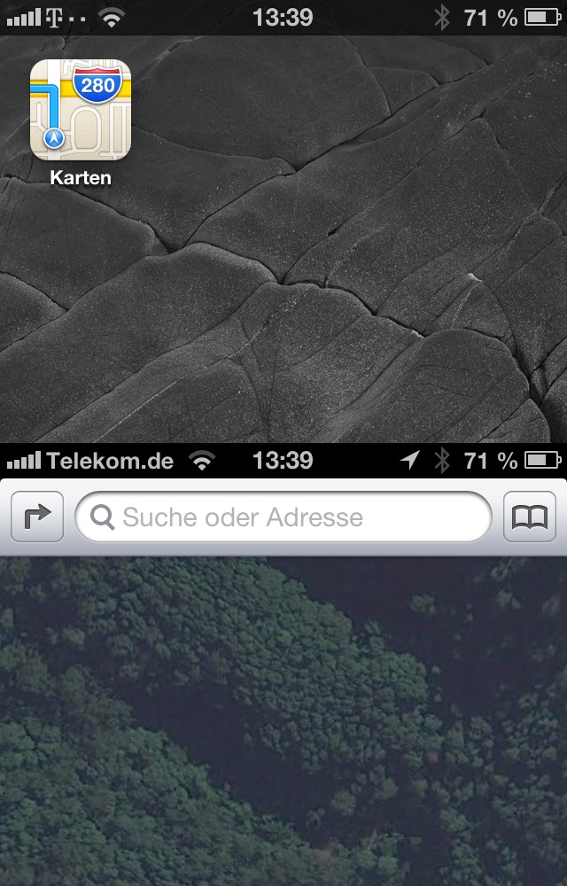 Um mal kurz einen Weg nachzuschlagen oder einfach einen Ort zu erkunden, hierfür nutze ich Google Maps. Zum Navigieren habe ich Navigon. Apples liebloser schwarz-weiß-Kram nutze ich so gut wie gar nicht. Aber wenn es sich „mal“ steigern sollte, bin ich auch dafür offen, so leider für meinen Geschmack nicht konkurrenzfähig mit Google Maps.
