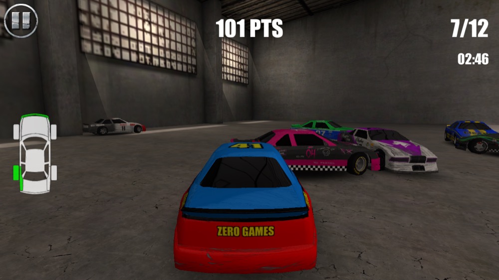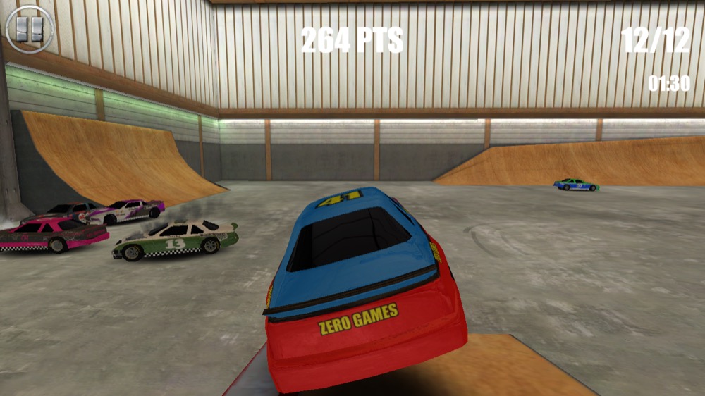 Obwohl das Gameplay ganz witzig klingen mag, ist es mir zu stumpf. Es geht wirklich nur darum, den Gegner zu rammen. Wenn sich mehr als sechs Auto knubbeln, dauert es seine Zeit, bis man wieder Gas geben kann. Wirklich tolle Effekte gibt es ebenfalls nicht, lediglich die freischaltbaren Welten sorgen für Abwechslung. So fahrt ihr zum Beispiel in einem Skaterpark und könnt über Rampen springen, später entführt Extreme Gear auch ins Stadion oder auf ein Flugfeld. Zur Steuerung stehen verschiedene Möglichkeiten bereit, zum Beispiel eine Button- oder Neigungssteuerung.