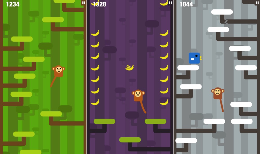 Banana Bunch ist ein klassischer Plattformer mit einem simplen Gameplay. Der kleine Affe Eugene möchte nach oben klettern und Bananen einsammeln. Hüpfen tut das kleine Tierchen von alleine, ihr müsst lediglich euer Gerät zur Seite neigen um die Richtung vorzugeben. Sammelt man die leckeren Bananen ein wird man schneller nach oben befördert, außerdem gibt es Power-Ups, mit denen man ein paar Vorteile erhält.