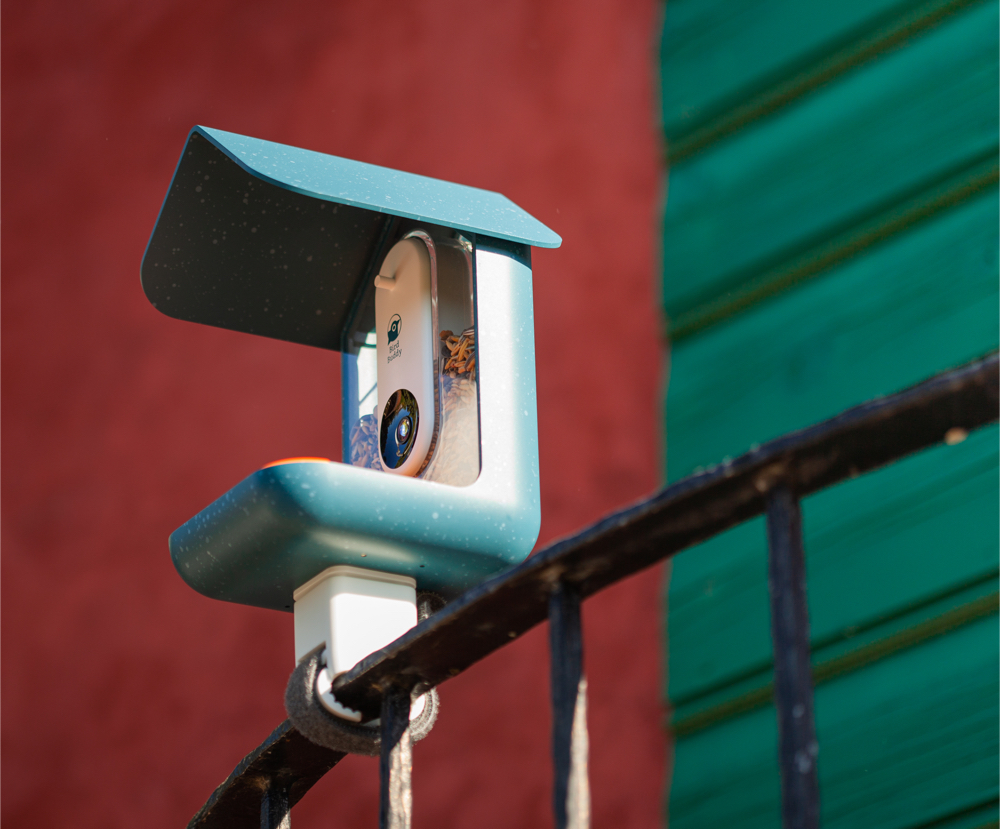 „BirdBuddy ist eine smarte Futterstation für Vögel, die dich über gefiederte Besucher benachrichtigt, deren Fotos erfasst und diese in einer wunderschönen Sammlung, die einfach anzuzeigen und zu teilen ist, erfasst“ – so lässt das Team von BirdBuddy auf der eigenen Website wissen. Die in Form eines klassischen Vogelhäuschens gehaltene Futterstation wird aus stabilem Kunststoff hergestellt und enthält einen transparenten Container mit 900 ml Kapazität, in den von der Rückseite aus Futter eingestreut werden kann. An der Vorderseite befindet sich eine 5-Megapixel-Kamera mit 720p Auflösung, 120 Grad Weitwinkellinse, Dual-Bewegungsmelder und eingebautem Mikrofon, die sich bei Temperaturen zwischen -20,5 bis +48,5 Grad verwenden lässt und über einen internen Akku mit 6.040 mAh verfügt. Über ein USB-C-Kabel kann das herausnehmbare Kameramodul problemlos aufgeladen werden.