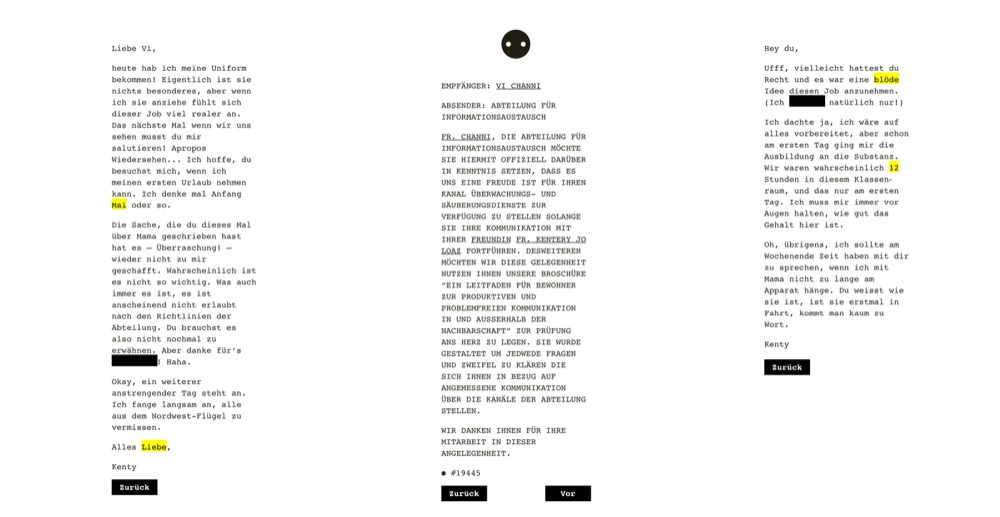 Einige Wörter der Briefe sind geschwärzt und müssen vom Spieler richtig eingesetzt werden, um mit dem nächsten Brief fortfahren zu können. „Zensur ist frustrierend, aber der menschliche Geist kann diesen Frust durch spielerische Elemente überwinden“, schreiben daher auch die Entwickler von Mrgan über ihren Titel.