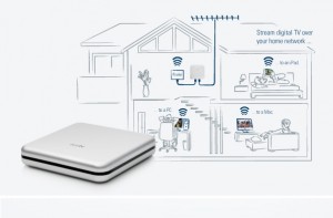 Bei dem Netstream SAT handelt es sich um eine kleine Box, die man einfach mit seiner Satelliten-Schüssel und dem Router verbindet. Ohne große Konfiguration wird dann das TV-Signal in das heimische Netzwerk eingespeist und kann dann nicht nur mit dem Computer, sondern auch mit dem iPhone oder iPad abgerufen werden. Mittlerweile gibt es sogar eine Android-Version der EyeTV-Software.