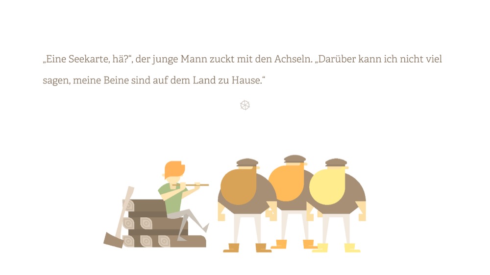 Ihre Geschichte ist mindestens so spannend wie das Spiel selbst. „Burly Men at Sea ist ein Volksmärchen über drei große, bärtige Fischer, die sich vom Gewöhnlichen abwenden, um sich auf die Suche nach Abenteuern zu begeben“, heißt es in der Beschreibung im App Store über das komplett in deutscher Sprache synchronisierte Spiel. Mutigbart, Stetigbart und Hastigbart finden auf ihrer Insel eine mysteriöse Seekarte und damit den Beginn ihres Abenteuers.