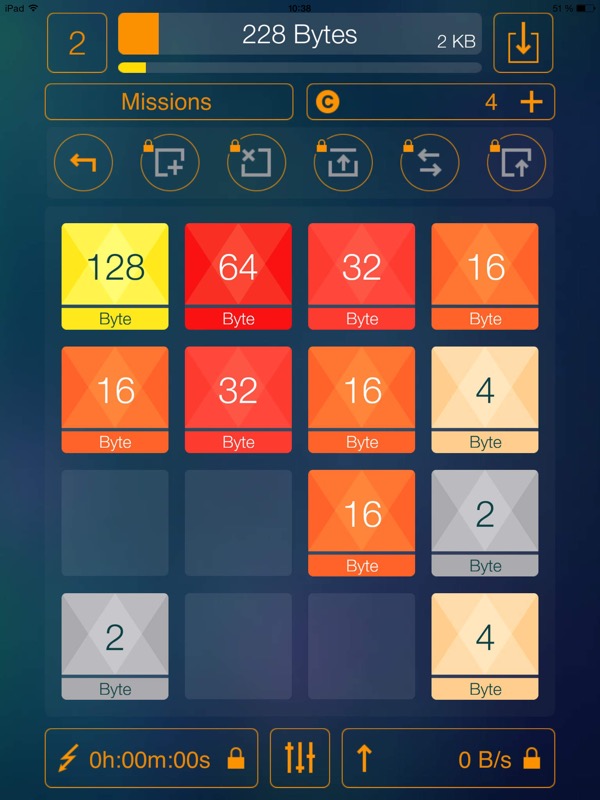 Wie der Titel der App bereits vermuten lässt, bewegt sich Byte Master in der Welt des Speichers. Genau wie beim Zahlenspiel-Klassiker Threes müssen auch hier gleiche Zahlen durch Verschieben auf einem Spielfeld zusammengefügt werden, um so immer höhere Zahlenwerte kreieren zu können – mit dem Unterschied, dass sich hier alles um Bytes, Kilobytes und Megabytes dreht.