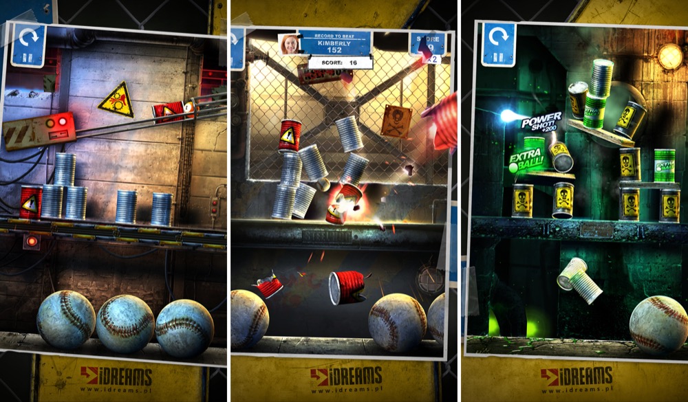 So gibt es beispielsweise Dosen, die explodieren und so andere Dosen durch die Gegend schleudern. Andere Dosen erlauben einen Extra-Ball, wenn man sie genau trifft und abräumt. Später geht es sogar darum, beweglichen Hindernissen auszuweichen oder Schalter und bestimmte Punkte zu treffen, um Kettenreaktion auszulösen – das macht wirklich Laune. Ebenfalls hervorzuheben sind die tollen Grafiken, die besonders auf dem Retina-Display eine gute Figur machen. Hinzu kommt eine tolle und realistische Physik. Ich hatte zu keinem Zeitpunkt das Gefühl, dass etwas passiert, das so nicht seine Richtigkeit hat.