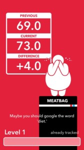 Zuerst müsst ihr natürlich euer aktuelles Gewicht eintragen, danach sollte die tägliche Gewichtsveränderung ebenfalls in die App geschrieben werden. Ist die Differenz zum vorherigen Tag höher, man hat also wieder etwas zugenommen, wird der Assistenz in CARROT Fit sauer, gibt ein paar Kommentare ab und motiviert zum weiteren abnehmen. Ist die angezeigte Differenz aber positiv, man hat also Gewicht verloren, freut sich CARROT Fit und belohnt uns mit netten Sprüchen und Punkten, um so im Level aufzusteigen.