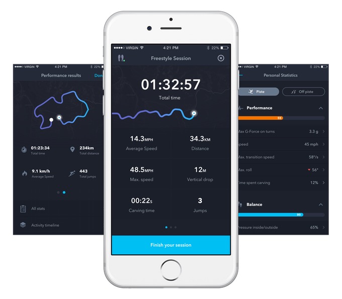 Die Idee ist nicht verkehrt, schließlich hängt beim Skifahren sehr viel von der Gewichtsverlagerung im Skischuh und von den Kanten der Ski ab. Mit insgesamt 48 Drucksensoren in jeder Einlegesohle sowie den Bewegungssensoren in den Trackern können diese Werte erstmals anschaulich gemacht und in einer App analysiert werden.