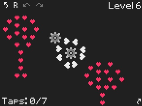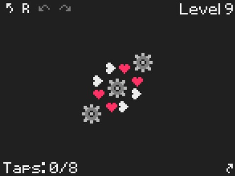 Neben diesem Erzählstrang geht es allerdings vornehmlich darum, die einzelnen Puzzles innerhalb der Level auch zu lösen. Ziel jedes Levels ist es, die abgebildeten Herzen so zu drehen, dass alle hochkant auf ihrer Spitze stehen – so, wie man Herzen halt überall abgebildet findet. Die Herzen können mit Hilfe von Zahnrädern gedreht werden, allerdings immer nur im Uhrzeigersinn. Ein wenig erinnert das Gameplay an den berühmten Zauberwürfel, auch unter dem Namen „Rubik’s Cube“ bekannt.