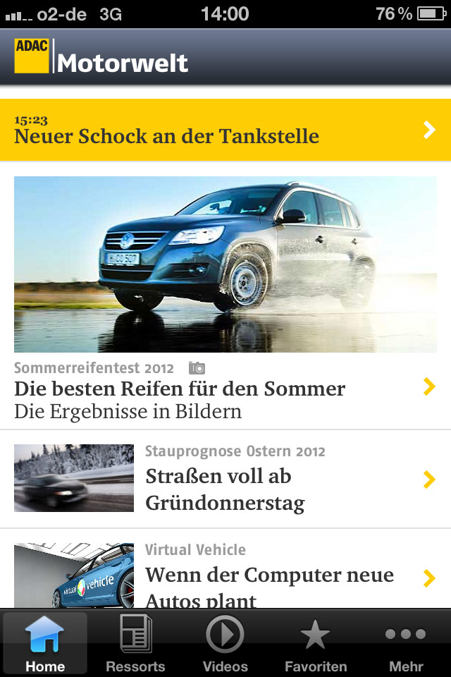Über die App bekommt man Zugriff auf das Nachrichten- und Video-Archiv des ADAC, die Inhalte sind natürlich entsprechend für das kleine Display optimiert. Die Benutzerführung ist wirklich gelungen, die einzelnen Artikel lassen sich sehr gut lesen – und auf Wunsch auch offline speichern. Das geht sogar automatisch, damit man unterwegs noch schneller oder überhaupt an die News gelangt.