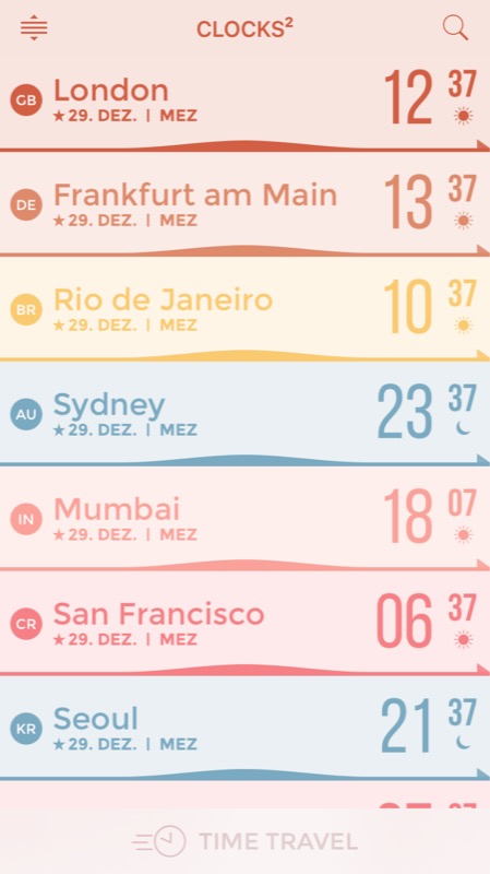 Mit Clocks² ist es möglich, verschiedene Städte auf der ganzen Welt einzubinden und ihre jeweiligen Ortszeiten anzeigen zu lassen. Gerade auf Geschäftsreisen oder auch bei Freunden oder Familie im Ausland ist es ungemein wichtig und praktisch zu wissen, wie spät es gerade zuhause oder bei den Lieben ist, unter anderem, um Anrufe oder Videochats koordinieren zu können.