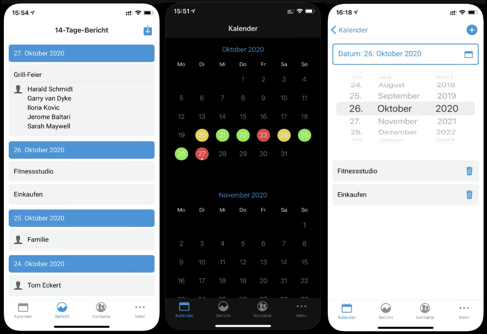 Virologen und die Bundesregierung raten aufgrund der aktuellen Entwicklungen in der Coronavirus-Pandemie dazu, ein Kontakttagebuch zu führen, um so im Falle eines Falles schnell handeln zu können und die ohnehin schon überlasteten Gesundheitsämter bei der Nachverfolgung zu entlasten. Natürlich können auch ausgedruckte Tabellen oder handschriftliche Notizen für solche Zwecke verwendet werden. Wichtig ist dabei, Datum, Namen der Kontaktpersonen, Dauer der Begegnung, Aufenthalt im Freien oder Drinnen sowie das eventuelle Tragen eines Mund-Nasen-Schutzes zu vermerken. Kommt alle gut durch die nächsten Wochen!