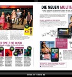 Am unteren Rand des iPad wird dauerhaft eine Leiste eingeblendet, die verschiedene Optionen beinhaltet. Mit einem Klick auf das Symbol ganz links öffnet man ein Inhaltsverzeichnis. Dort werden alle Themen mit einem Bild, der Überschrift und einem kurzem Teaser angepriesen. Die aktuell aufgerufene Seite wird rot hinterlegt dargestellt. Klickt man nun auf das zweite Symbol, was aussieht wie ein Balkendiagramm, bekommt man eine weitere Übersicht gezeigt. Diesmal aber bekommt man eine vertikale Scrolleiste mit der kompletten Vorschau aller Seiten im Miniformat. Mit dem Finger kann man kinderleicht durch die Ausgabe navigieren und mit einem Tap kommt man zur ausgewählten Seite. Mit der Lesezeichen-Funktion können Seiten eingespeichert werden, um diese später schneller wieder zu finden. Leider bleiben alle Ansichten dauerhaft geöffnet, bis man sie mit einem erneuten Klick wieder schließt. Hat man die Lesezeichen aufgerufen und klickt anschließend auf das Inhaltsverzeichnis, überlappen beide Ansichten. Hier wäre eine bessere Lösung wünschenswert.