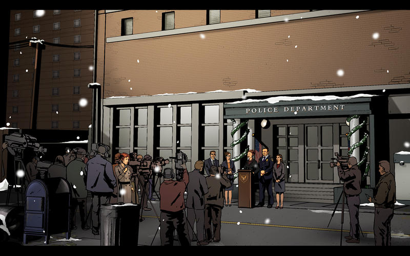 Diese Gewissensbisse begleiten euch fortwährend in The Detail. Kombiniert wird dieser in einem düsteren Graphic Novel-Stil gehaltene Titel immer wieder mit einigen Sequenzen, entweder in Schwarz-Weiß-Optik oder in Farbe, in denen die Geschichte voran getrieben wird. Wie in einem Point-and-Click-Game können ab und an auch bestimmte Personen oder Objekte begutachtet oder mit ihnen kommuniziert werden. Nicht immer jedoch erschließt sich das Geschehen innerhalb der jeweiligen Szenen auf Anhieb.