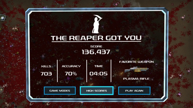 Crimsonland HD ist, wie eingangs schon beschrieben, ein Dualstick-Shooter, der sich der alten Arcade-Generation verpflichtet fühlt. So ist es kein Wunder, dass das Spiel zwar über eine relativ einfache Grafik verfügt, aber dafür jede Menge Action auf dem Spielfeld vorhanden ist. Die Developer sprechen von „Tausenden von Aliens, mutierten Eidechsen, Riesenspinnen und mehr“, die es auf blutigste Art und Weise mit der eigenen Waffe zu erledigen gilt.