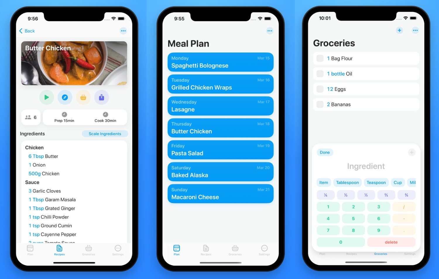 Die Rezeptverwaltung von Entwickler Devin Davies wird im App Store als „simple Essensplaner- und Rezept-Organisations-App“ beschrieben. „Behalte ganz einfach den Überblick über deine Lieblingsrezepte, indem du Websites, Bilder und Notizen zu den Rezepten speicherst. Verwende diese Rezepte, um deine Mahlzeiten für die kommende Woche zu planen, damit du immer weißt, was es zum Abendessen gibt. Erstelle Einkaufslisten aus Rezeptzutaten und synchronisiere diese bequem mit Apples Erinnerungen-App.“