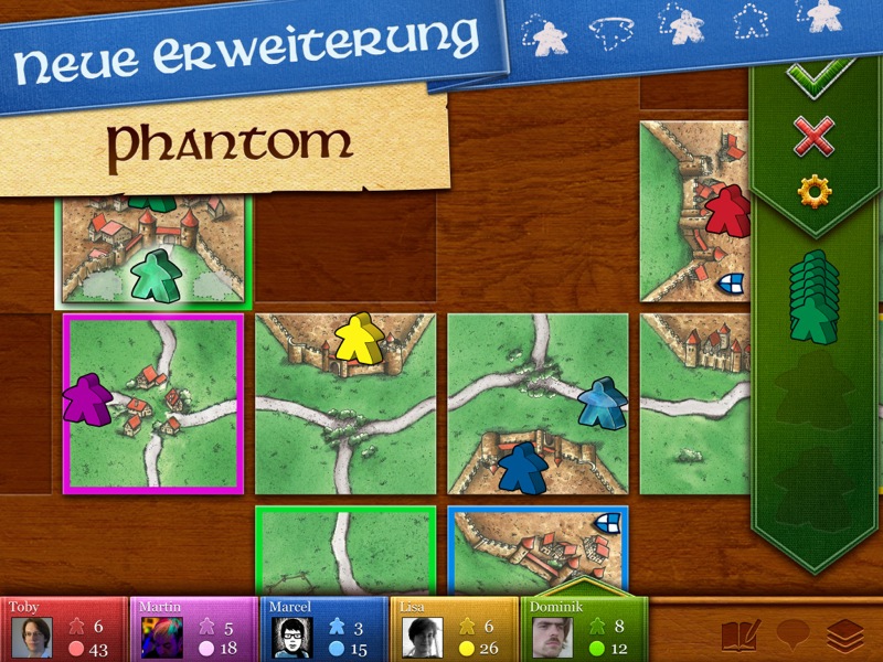 Carcassonne (App Store-Link) zählt definitiv zu den besten Brettspielen im App Store. Die Universal-App für iPhone und iPad wird zudem immer wieder mit neuen Inhalten und Spielsteinen ausgestattet, heute gibt es mit „Das Phantom“ (auch bekannt als „Das Gefolge“) eine neue Erweiterung als 89 Cent günstigen In-App-Kauf.