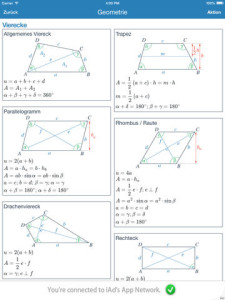 Es handelt sich um eine Wissensdatenbank, die Formeln, Regeln und vieles mehr zum Nachschlagen bereithält. Auch ein Mathe-Profi wird sich nicht alle Formeln merken können und muss einige Nachschlagen. In “Das Tafelwerk” sind nach Themengebieten sortiert alle Gleichungen, Formeln und Rechenoperationen übersichtlich und Retina-optimiert dargestellt.