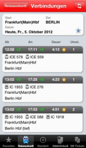 Als eine der letzten Apps auf der ersten Seite meines Homescreens (jetzt fehlt eigentlich nur noch simfy, aber das wird wohl noch dauern) wurde der DB Navigator (App Store-Link) für das iPhone 5 optimiert. Wer öfters mit öffentlichen Verkehrsmittel unterwegs ist, sollte sich diese kostenlos iPhone-App (auch für das iPad erhältlich) nicht entgehen lassen.