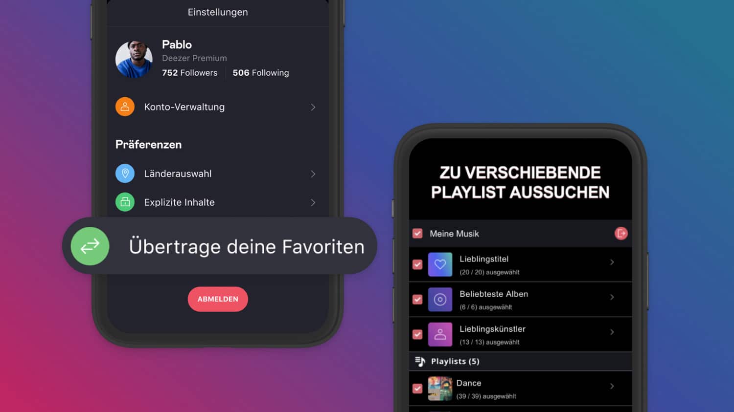 Der Musikstreaming-Dienst Deezer (App Store-Link) hat nun in Zusammenarbeit mit dem Transfer-Tool Tune my Music ein neues Feature in der eigenen App bekanntgegeben: „Übertrage deine Favoriten“. Damit können neue oder bestehende Deezer-Nutzer bzw. -Nutzerinnen ihre Musiksammlung ab sofort von einem anderen Streamingdienst mühelos zu Deezer umziehen lassen. Das Feature ist vollständig in die Deezer-App integriert, so dass man Deezer nicht verlassen muss, um die Lieblingssongs und Playlists im Web oder direkt auf dem Mobilgerät zu übertragen.