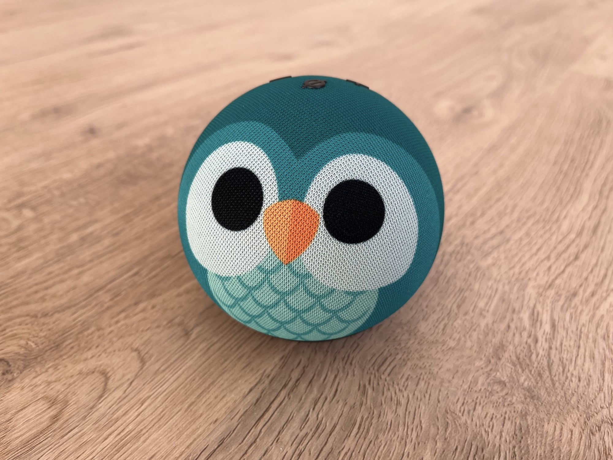 Der Echo Dot Kids der 5. Generation ist in den Ausführungen Drache oder Eule erhältlich. Inmitten der vielen technischen Geräte auf meinem Schreibtisch hat meine Tochter (1 3/4) den Echo Dot direkt als „ansprechenden“ Gegenstand identifiziert und wollte sofort mit dem „Ball“ spielen. Das Design hat den „Kinderfreundlichkeitstest“ also bestanden.