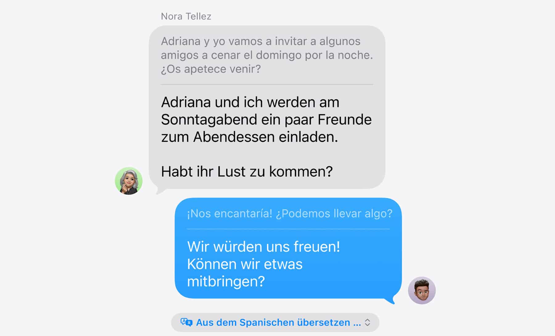 Während Live-Übersetzungen für die AirPods Pro 3 in Deutschland nicht verfügbar sind, kannst du immerhin die Live-Übersetzungen in der Nachrichten-App nutzen. Wenn du mit Personen chattest, die eine andere Sprache sprechen, kannst du dir die Übersetzungen in Echtzeit holen und so für eine nahtlose Kommunikation sorgen. Unterstützt werden unter anderem Englisch, Französisch, Deutsch, Italienisch, Japanisch, Koreanisch, Portugiesisch, Spanisch und Chinesisch.
