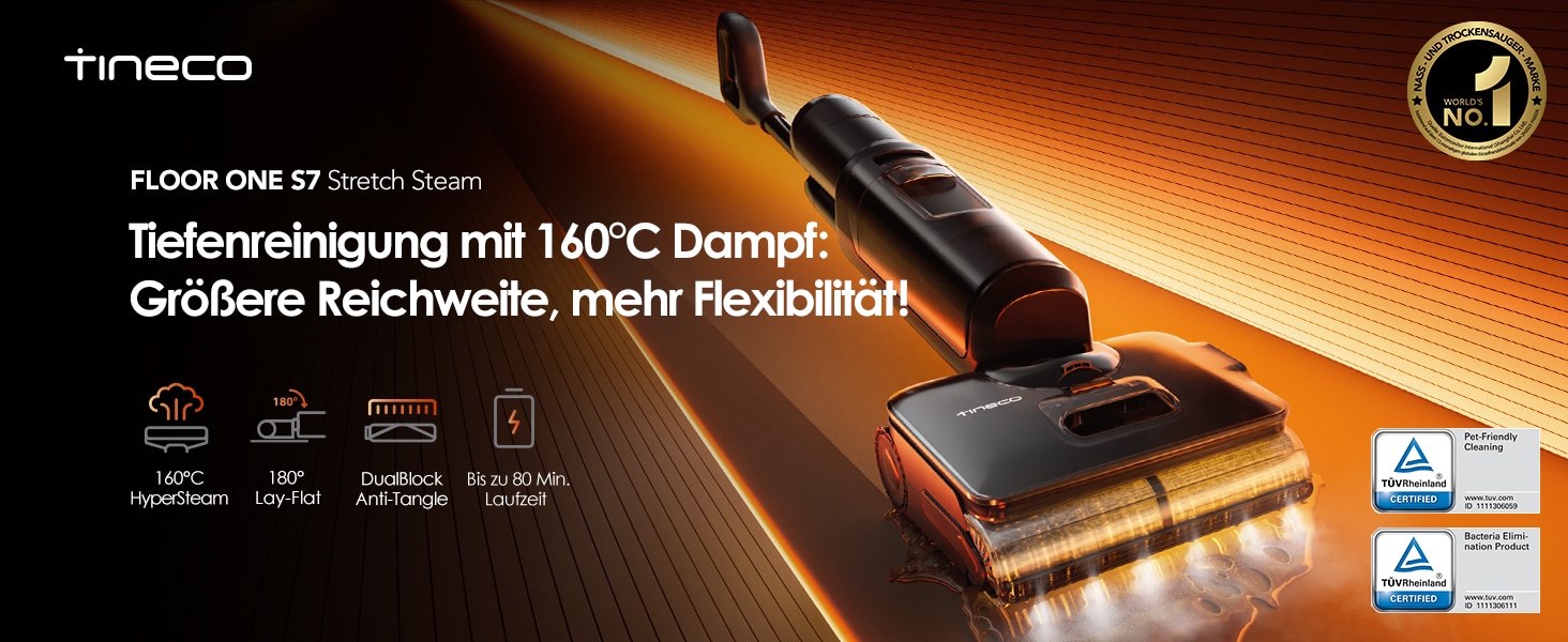Tineco FLOOR ONE S7 Stretch Steam Nass Trockensauger 160 °C HyperSteam...