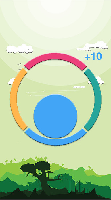 Das kostenlose Farben-Puzzle bietet ein sehr einfaches Spielprinzip. In einem Kreis, der aus vier farblich unterschiedlichen Teilen besteht, befindet sich eine Kugel, die zur passenden Farbe gewischt werden muss. Nach jeder richtigen Berührung dreht sich der Kreis und die Farbe in der Mitte wechselt. Ihr müsst wieder nach rechts, links, oben oder unten wischen und ein Farb-Match herstellen.