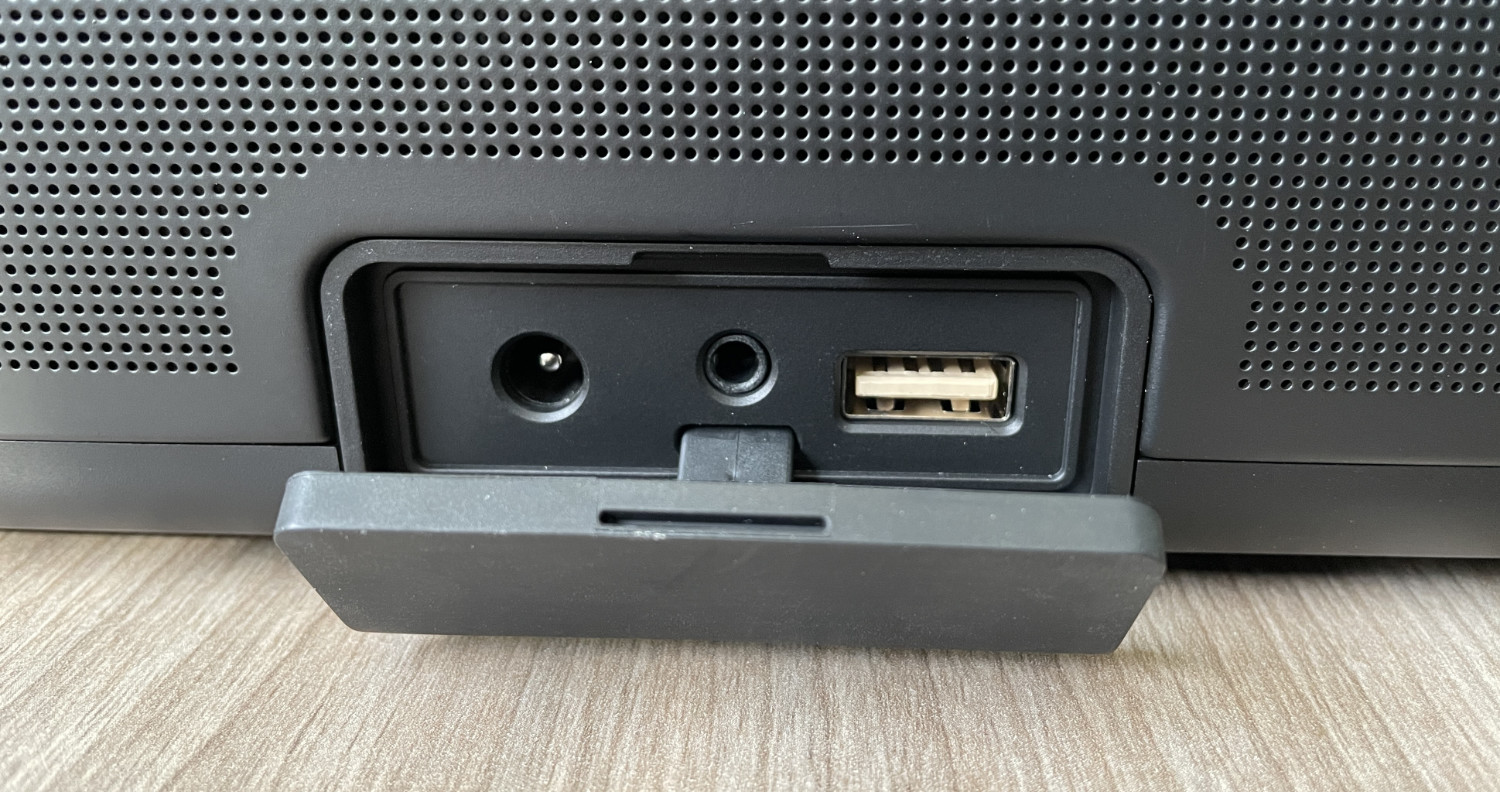 Im Lieferumfang des DOCKIN D Fine 2 befindet sich erfreulicherweise neben dem AC-Netzteil samt Aufsätzen für EU- und UK-Steckdosen auch ein 3,5 mm-Klinkenkabel sowie ein USB-auf-USB-C-Kabel. Mit dem angeschlossenen Netzteil wird der integrierte Akku binnen weniger Stunden voll aufgeladen, so dass danach für maximal 12 Stunden ohne störendes Kabel Musik gehört werden kann. Ebenfalls sehr lobenswert: Der eingebaute 7.500 mAh-Akku ist über eine mit Schrauben verschlossene Klappe an der Unterseite des Lautsprechers zugänglich und kann bei Bedarf ausgetauscht werden. Ein Ersatzakku lässt sich auf der DOCKIN-Website für 24,95 Euro nachbestellen – ein wichtiger und richtiger Schritt zu mehr Nachhaltigkeit im Lautsprecher-Segment.