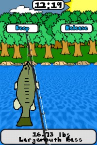 Bevor man den Köder in das Wasser wirft, muss man zunächst mit seinem Boot auf einen von 15 verschiedenen Seen hinausfahren. Erst danach nimmt man das iPhone fest in die Hand und wirft die Angelrute aus.