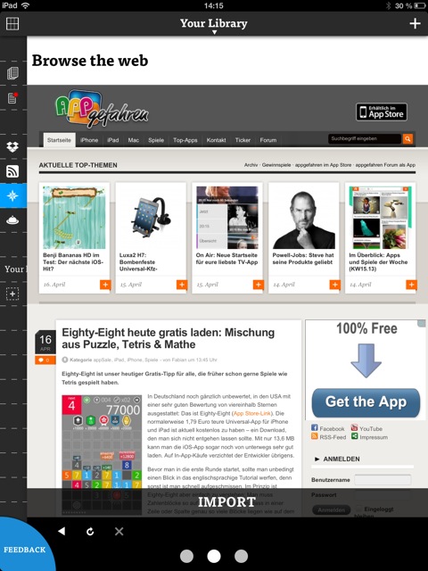 In dotdotdot kann man nicht nur Texte von jeder Webseite zum Später-Lesen markieren und hinzufügen, sondern auch Dokumente aus der Dropbox importieren, eine Verknüpfung zum Google Reader herstellen oder sogar eBooks hinzufügen, die man gerne auf iPhone oder iPad lesen möchte. In den Dokumenten lassen sich sogar Passagen markieren und annotieren – diese Notizen kann man sogar mit Freunden teilen, denn hinter dotdotdot steht noch ein kleines Netzwerk.