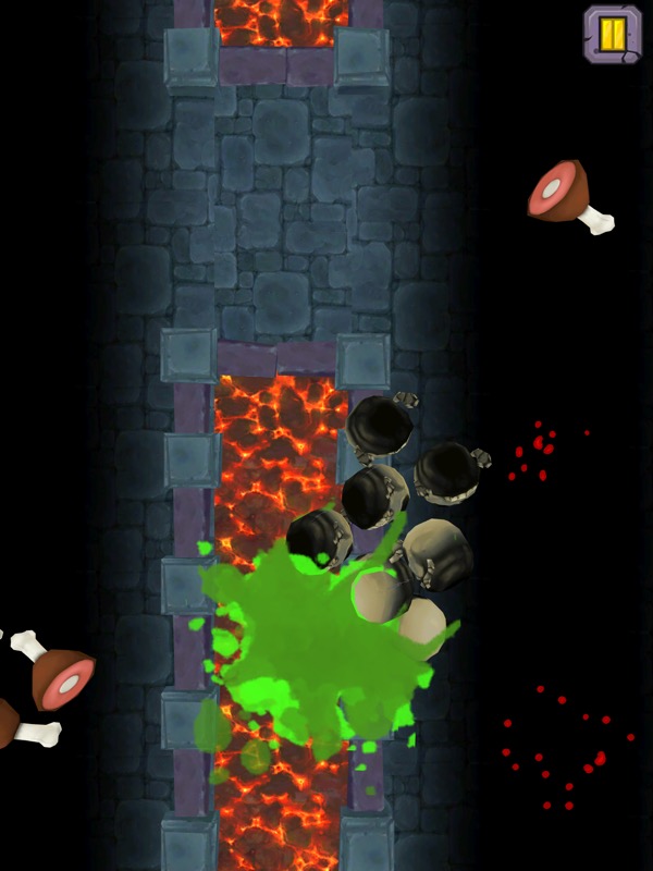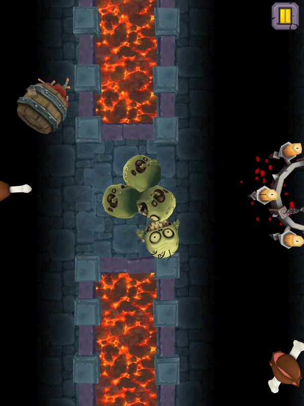 Für letztere Aktion sorgen immer wieder fiese Hindernisse wie Lavaflüsse oder Gegner, die mit allem, was sie finden können, auf die fleischsuchende Gruppe schießen. Hier sind schnelle Reaktionen und wildes Wischen auf dem Screen vorprogrammiert. Je nachdem, wie lange man es mit den verbleibenden Zombies aushält, und wie viele Fleischstücke man auf dem Weg durch die Unterwelt eingesammelt hat, erhält man nach dem Ableben der letzten Kreatur Punkte aufs eigene Konto geschrieben.